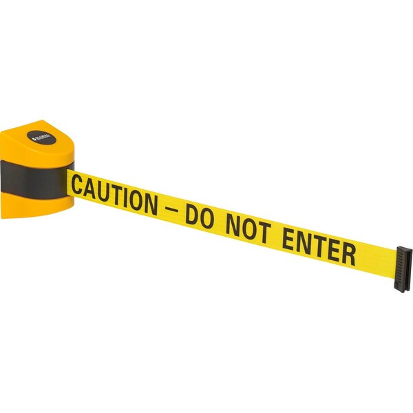 Wall Mount Retractable Belt Barrier, Yellow Case W/30' Yellow Caution Belt