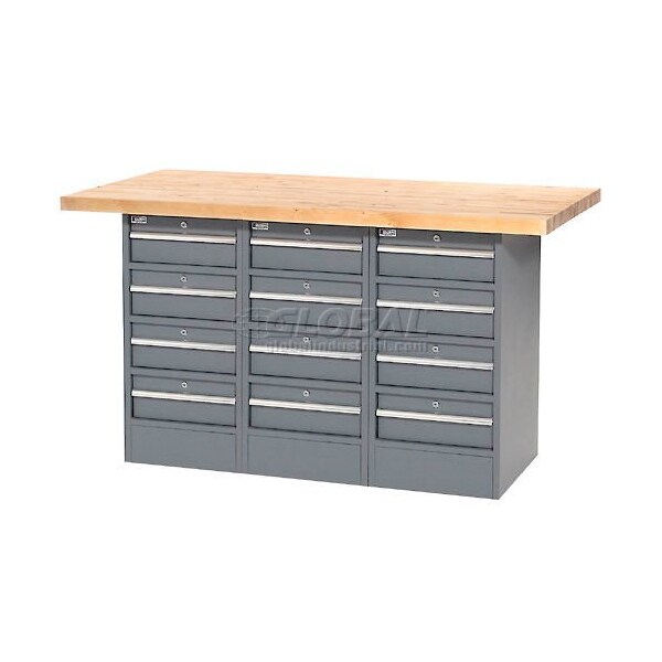 Workbench w/ Maple Square Edge Top & 12 Drawers, 60inW x 30inD, Gray
