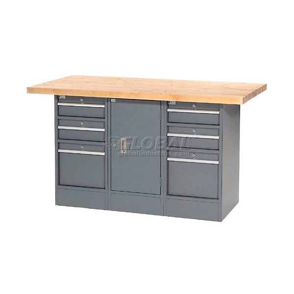 Workbench w/ Maple Square Edge Top & 6 Drawers, 60inW x 30inD, Gray