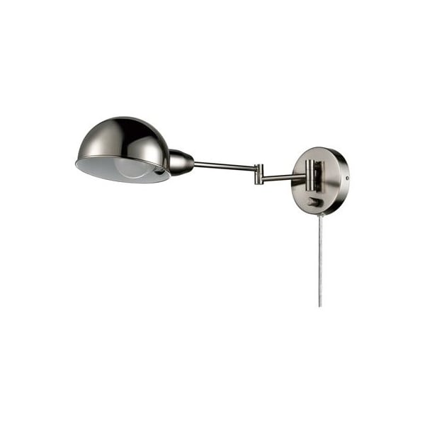1 Light, Brushed Steel Finish, Pharmacy Wall Sconce, Extendable Pivoting Arm, OnOff Rotary Switch On Canopy, Medium Base, 6' Clear Cord Hardware Kit, 10W A19 NonDimmable LED Bulb Included, ETL listed
