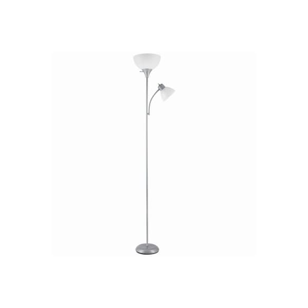 Delilah Collection, 72, floor lamp reading light in a silver finish A threestep dimmer allows you to change the brightness level of the uplight torchiere with ease The reading light is on an adjustable gooseneck so you can move it around to your desired placement Separate onoff switches complete the design, allowing independent functionality Comes with a 5 foot cord Requires floor lamp 1 x E26medium base 60 watt bulb reading lamp 1 x E26medium base 40 watt bulb Both bulbs sold separately