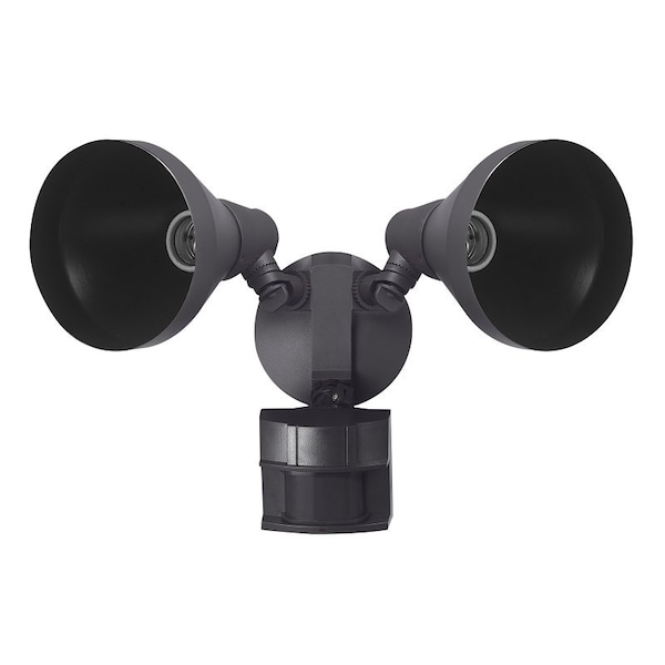 Upgrade your outdoor spaces with the motion sensor adjustable arm security flood light. Experience motion detection capabilities from all angles with a remarkable range of up to 70 ft or 21 m and a 180 deg detection zone. Automatically turning off after 1, 5 or 10 min gives you the flexibility to choose the duration that suits your needs. The adjustable arm design allows easy adjustment of the motion sensor so you can place the light on either your wall or eave. Use 2X standard base E26 PAR38 shape 120 W max bulbs - compatible with incandescent and LED. Includes all mounting hardware to give you the option to wall-mount or eave-mount and enjoy its weather-resistant, durable construction. Ideal for pathways, sheds, garages and more. Backed by a 2 year warranty, you can trust in the GLOBE ELECTRIC commitment to quality.
