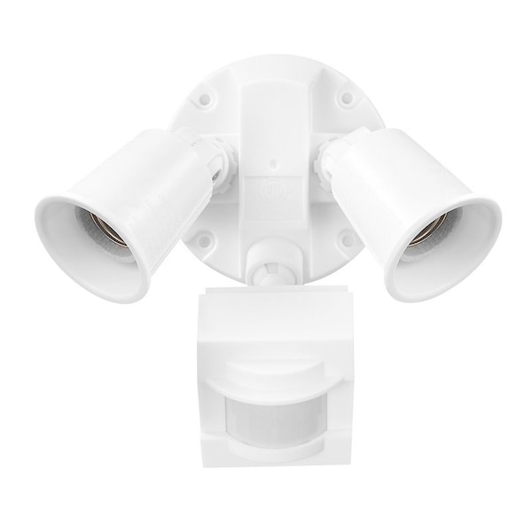 Upgrade your outdoor spaces with the motion sensor swivel arm security flood light. Experience motion detection capabilities from all angles with a remarkable range of up to 60 ft or 18 m and a 110 deg detection zone. Automatically turning off after 1, 5 or 10 min gives you the flexibility to choose the duration that suits your needs. The rotating arm design allows easy adjustment of the motion sensor so you can place the light on either your wall or eave. Likewise, the swivel arms allow desired light placement for any space. Use 2X standard base E26 PAR38 shape 120 W max bulbs - compatible with incandescent and LED. Includes all mounting hardware to give you the option to wall-mount or eave-mount and enjoy its weather-resistant, durable resin construction. Ideal for pathways, sheds, garages and more. Backed by a 2 year warranty, you can trust in the GLOBE ELECTRIC commitment to quality.