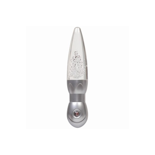 LED automatic lava night light with a silver base automatically changes color It lights up at dusk and turns off at dawn