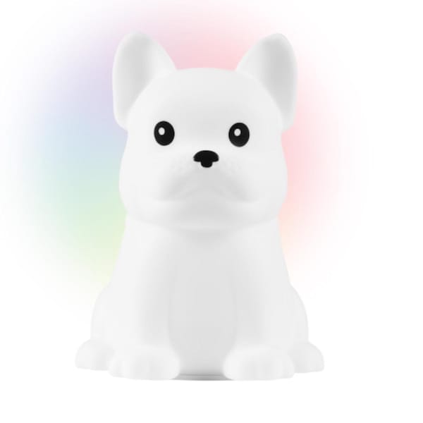 The adorable Squish Kids Night Light Collection by Globe Electric offers fun night light lamps for the entire family. Made from washable silicone with a pleasant soft touch body these kids night lights are perfect for children of any age. With different shapes to choose from each member of the family can bring home their favorite item to keep them safe at night. Simply tap the top of the bulldog's head once to turn it on and continue to tap to cycle through a variety of colors. This charming and playful light last for four hours with just one charge and will provide sweet magical dreams for the entire family.
