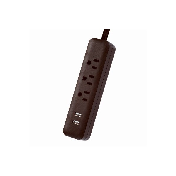 6', Black Fabric Covered Cord, 16 Gauge, Includes Black Power Strip, Right Angle Plug, 2 USB 24A Ports, 3 Grounded Outlets, 300 Joules Surge Protection