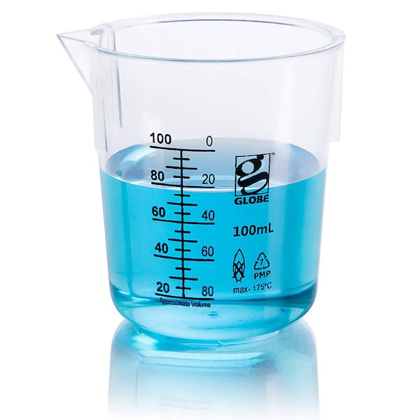 Diamond Essentials Griffin Style Beakers meet the demands for mixing, pouring, stirring, and measuring solutions in many laboratory operations. Available in economic polypropylene PP or crystal clear polymethylpentene PMP, these beakers are the safe, shatterproof alternative to glass in operations where plastic is suitable. Value, quality, and performanceare insured by precision molding in an automated manufacturing process. The beakers are designed with a single, no drip spout and the beakers with handles facilitate easy pouring