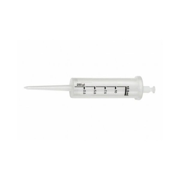 RV-Pette PRO Dispenser Syringe Tips deliver excellent results when used with RV-Pette PRO Repeat Volume Pipettors and most popular brands of repeat volume pipettors. RV-Pette PRO tips are available in 12 sizes for dispensing volumes from 1Î1⁄4l to 5500Î1⁄4l. Tips use the direct displacement method and are the safe, secure choice for handling a wide range of liquids including those that are viscous, infectious, and volatile. Available sterile or non-sterile. Sterile tips are individually wrapped and certified to be RNase, DNase, ATP, and pyrogen free. RV-Pette PRO dispenser tips and compatible with syringe tips from most manufacturers, including the Eppendorf Combitips, Combitips Plus, and Combitips Advanced. Maintenance free design requires no batteries or charging and top quality materials are resistant to most chemicals. Reliable Colored Adapter Rings Sterile or Non-Sterile