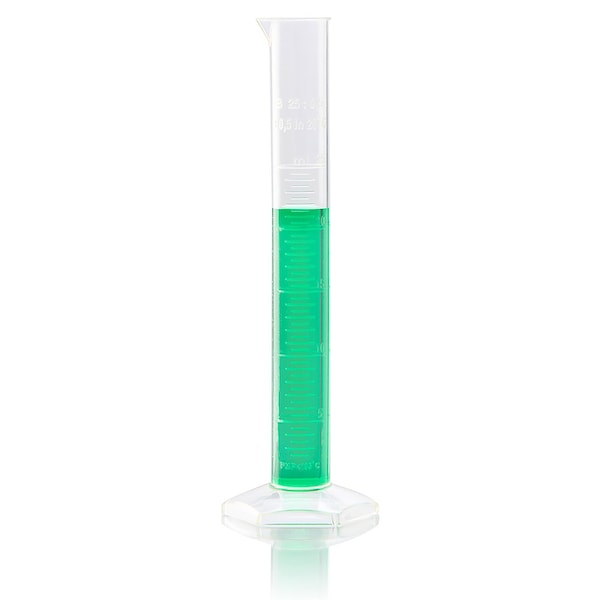 25mL Cylinder, Measuring, Diamond Essentials, Class B, PMP, Molded Graduations, tall form