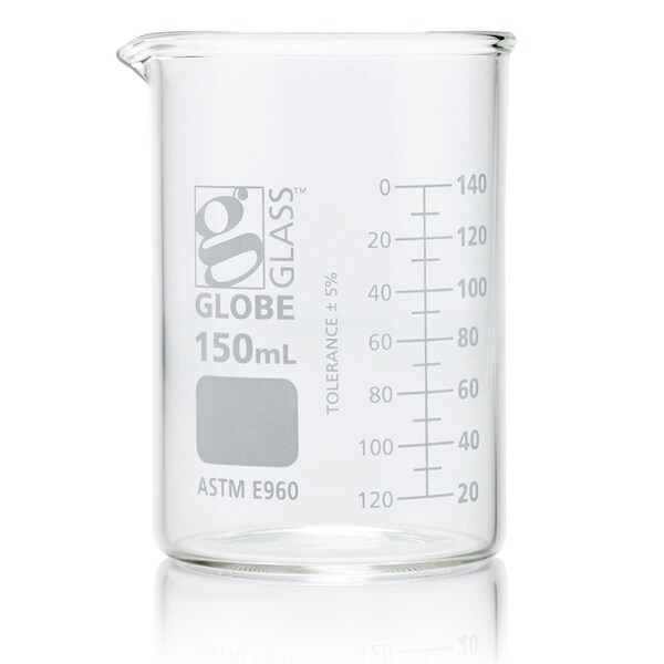 Beaker, Globe Glass, 150mL, Low Form Griffin Style, Dual Graduations, ASTM E960, 12/Box, 12PK