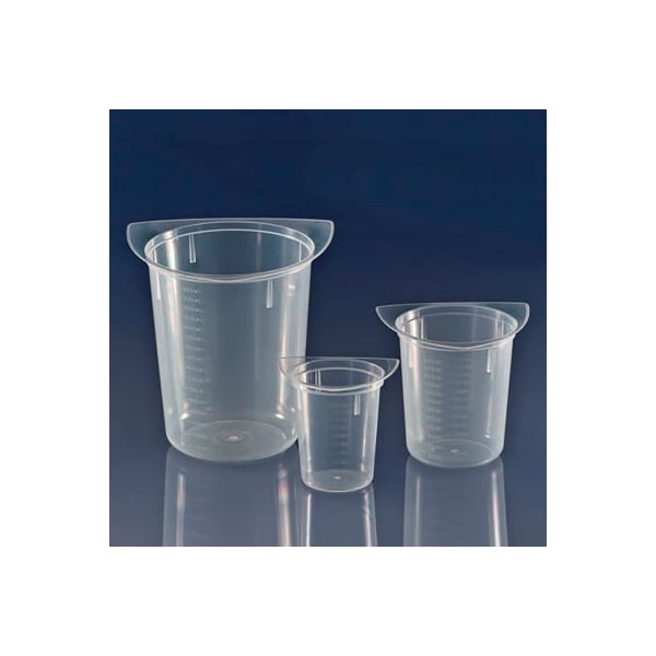 These tri-pour plastic beakers range from 50ml to 1000ml. They are unbreakable and can be used with commonly used acids, solvents and alkalis. The laboratory beakers can be autoclaved and are reusable, yet are inexpensive enough to be disposable. All six sizes are graduated in ml. features polypropylene pp three dripless pouring spouts molded graduation marks packaged 100 beakers per case