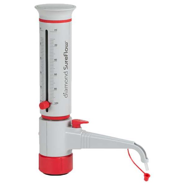 Bottle Top Dispenser, Capacity - Metric 100 mL, Graduation Increments - Metric 2 mL, Minimum Graduation - Metric 10 mL, Maximum Graduation - Metric 100 mL, Product Type Bottle Top Dispenser, For Use With Bottles, Autoclavable Yes, For Solution Types Reagents, Accuracy +/-0.5 Percent, Graduated Yes, Includes Not Applicable, Overall Height - Metric 300 mm