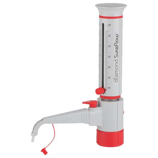 Bottle Top Dispenser, Capacity - Metric 60 mL, Graduation Increments - Metric 1 mL, Minimum Graduation - Metric 5 mL, Maximum Graduation - Metric 60 mL, Product Type Bottle Top Dispenser, For Use With Bottles, Autoclavable Yes, For Solution Types Reagents, Accuracy +/-0.5 Percent, Graduated Yes, Includes Not Applicable, Overall Height - Metric 300 mm