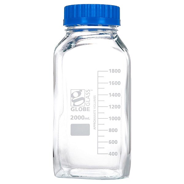 Bottle, Body Color Clear, Body Diameter - Metric 68 mm, Bottle Type Media, Capacity - Metric 2 L, Capacity - English 67.63 fl oz, Overall Height - Metric 253 mm, Closure Included Yes, Closure Liner Material Unlined, Screw Closure Size GL80, Mouth Size Wide, Autoclavable Yes, Graduated Yes, Sterile/Non-Sterile Sterile, Pre-Cleaned None, Graduation Increments - Metric 100 mL, USP Specification Type I, Closure Material Polypropylene
