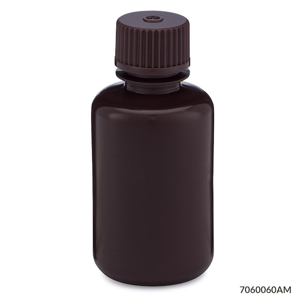 Bottle, Body Color Amber, Body Material HDPE, Body Diameter - Metric 41 mm, Bottle Type Sampling, Capacity - Metric 60 mL, Capacity - English 2.02 fl oz, Overall Height - Metric 85 mm, Closure Included Yes, Closure Liner Material Unlined, Screw Closure Size 20-415 mm, Closure Color Amber, Mouth Size Narrow, Autoclavable No, Graduated No, Sterile/Non-Sterile Non-Sterile, Pre-Cleaned None, Graduation Increments - Metric Not Applicable, USP Specification Type VI, Closure Material Polypropylene
