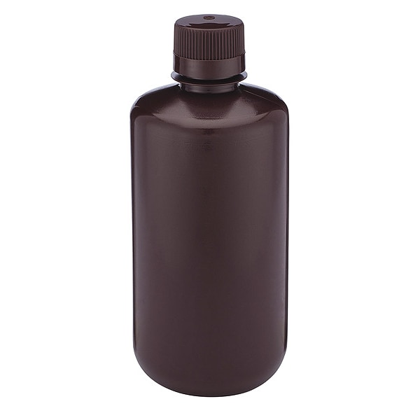 Bottle, Amber Narrow Mouth, Round, HDPE, 1000mL, PK6