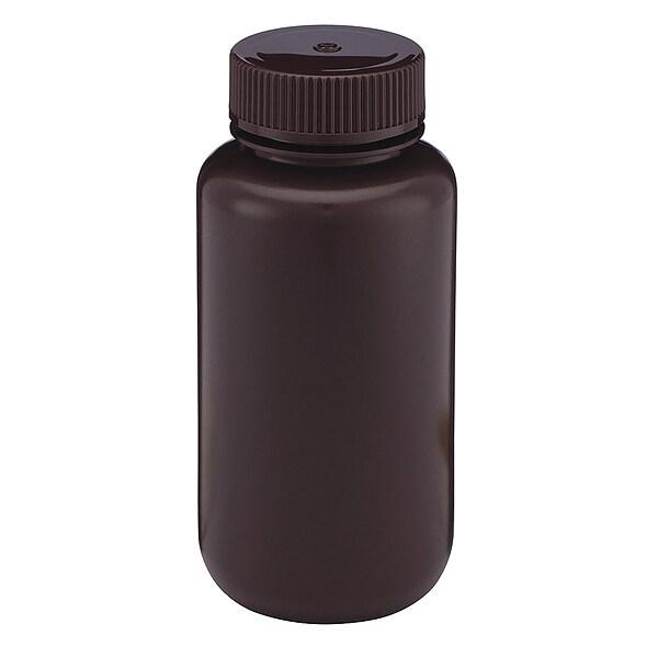 Bottle, Body Color Amber, Body Material HDPE, Body Diameter - Metric 61 mm, Bottle Type Sampling, Capacity - Metric 250 mL, Capacity - English 8.45 fl oz, Overall Height - Metric 133 mm, Closure Included Yes, Closure Liner Material Unlined, Screw Closure Size 43-415 mm, Closure Color Amber, Mouth Size Wide, Autoclavable No, Graduated No, Sterile/Non-Sterile Non-Sterile, Pre-Cleaned None, Graduation Increments - Metric Not Applicable, USP Specification Type VI, Closure Material Polypropylene
