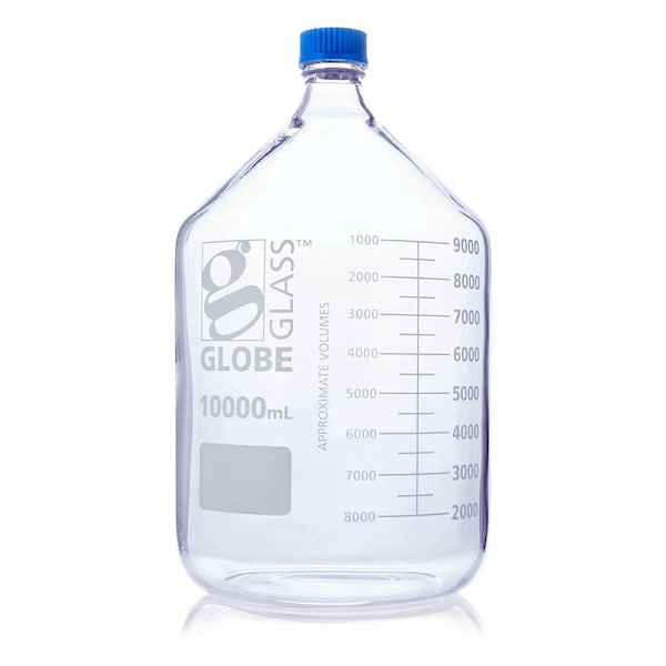 Bottle, Media, Globe Glass, 10000mL, GL45 Screw Cap, Dual Graduations, 1/Box
