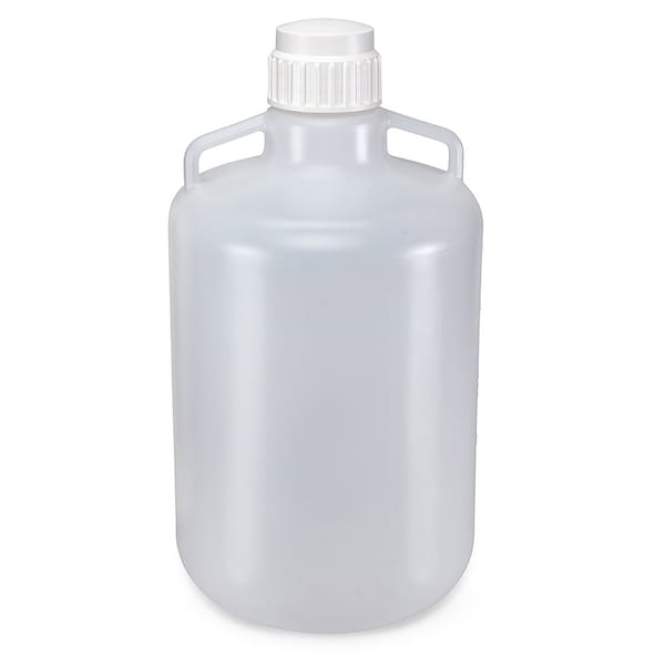 Carboy, Round with Handles, HDPE, White PP Screwcap, 20 Liter, Molded Graduations