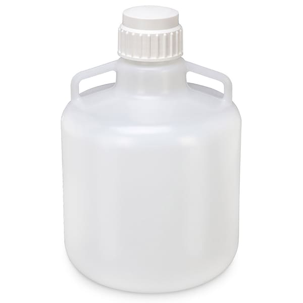 Carboy, Round with Handles, LDPE, White PP Screwcap, 15 Liter, Molded Graduations
