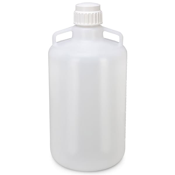Carboy, Round with Handles, LDPE, White PP Screwcap, 25 Liter, Molded Graduations