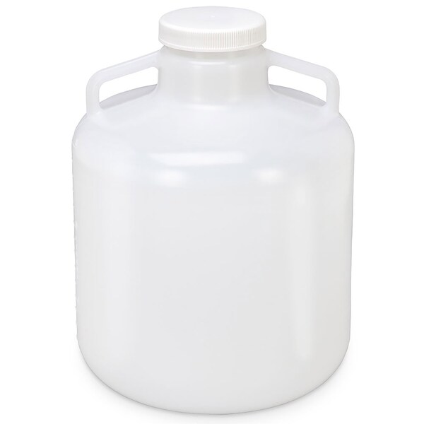 Carboy, Round with Handles, Wide Mouth, PP, White PP Screwcap, Molded Graduations, Autoclavable