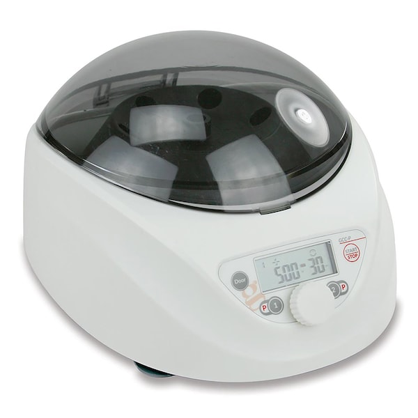The Globe Scientific GCC-P Portable Clinical Centrifuge is designed for easy transport to facilitate convenient field separations using the included 12VDC car power adapter. The GCC-P Portable Centrifuge is compact in size and packed with the features required for routine clinical applications. The included six-position rotor accommodates 1.5mL to 5mL, 7mL, 10mL and 15mL tubes all tube adapters are included. A weighted base ensures the unit remains stable in field environments. An easy-to-read LCD display shows both time and speed or RCF. Two program buttons enable simple programing and recall of regularly used methods. The timer will not count down until the set speed is reached to ensure your separations and experiments work as intended. Safety is maintained by an automatic lid lock that only disengages when the program is completed or manually once the unit has completely stopped