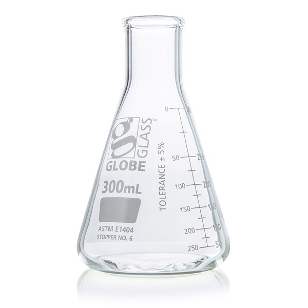 Flask, Erlenmeyer, Globe Glass, 300mL, Narrow Mouth, Dual Graduations, ASTM E1404, 12/Box