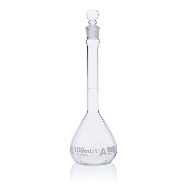 Flask, Volumetric , Globe Glass, 100mL, Class A, To Contain (TC), ASTM E288, 6/Box