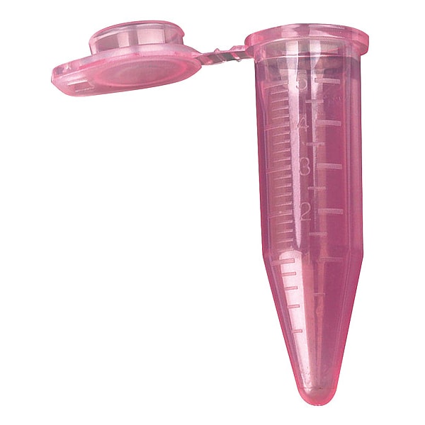 Centrifuge Tube, Nominal Capacity - Metric 5 mL, Body Diameter - Metric 16 mm, Nominal Capacity - English 0.17 oz, Overall Height - Metric 59.4 mm, Body Material Polypropylene, Maximum Relative Centrifugal Force 25,000 x g, Tube Type Centrifuge Tube, Body Color Red, Graduated Yes, Graduation Increments - Metric 0.2 mL, 0.5 mL, Includes Closure Yes, For Use With Centrifugation, Liquid Handling, Autoclavable Yes, Sterile/Non-Sterile Non-Sterile, Special Features Not Applicable