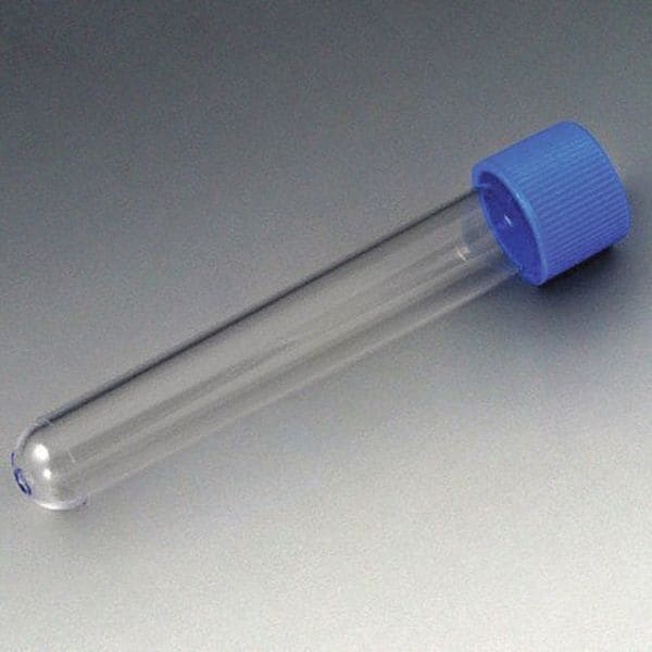 Test Tube with Cap, Nominal Capacity - Metric 10 mL, Body Diameter - Metric 16 mm, Nominal Capacity - English 0.34 oz, Overall Height - Metric 100 mm, Body Material Polystyrene, Tube Type Test Tube, Body Color Clear, Includes Closure Yes, Closure Material Polyethylene, Autoclavable No, Sterile/Non-Sterile Non-Sterile, Special Features Attached Blue Screw Cap, Basic Material Plastic, Includes Not Applicable, Clarity Transparent, Closure Liner Design Screw Thread, Closure Color Blue
