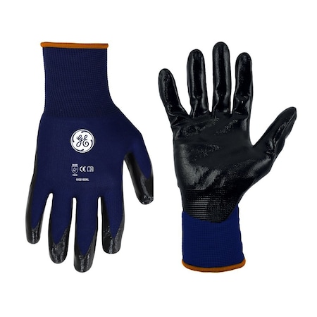 Gloves, Nitrile-Coated Nylon, MicroSurface, Palm & Fingers, 2 Abrasion Level, Blue/Black, Small