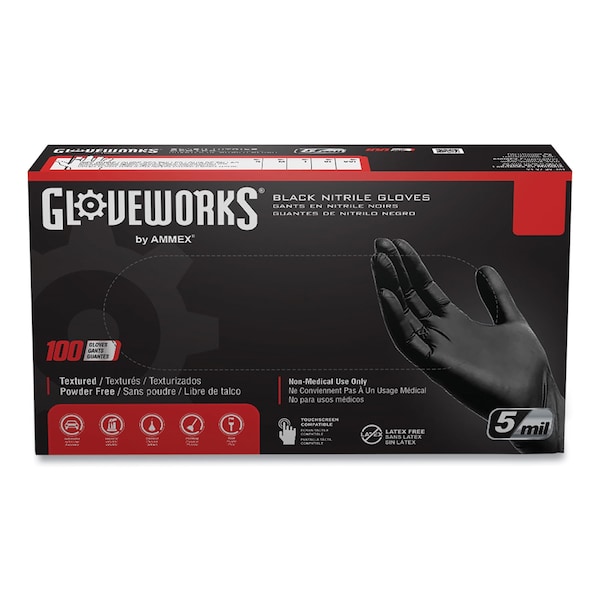 The Gloveworks by AMMEX Industrial Nitrile Glove will get as down and dirty as you need. It's the disposable glove that won't quit on you. This premium industrial-grade glove is the perfect combination of strength, dexterity, and comfort. Nitrile has three times the puncture resistance of latex so the glove holds up when working with tools and machinery. This glove offers excellent protection against a long list of common and specialty chemicals and is nearly as elastic as latex, so it conforms to your hand to deliver comfort, a great fit, and a high level of tactile sensitivity. A polymer coating makes it easy to put on the glove as well as to take it off, and since it's powder-free, there's no residue to damage a perfect finish or an adhesive bond. They are also suitable for countless uses around the house, from cleaning to painting to repairs. For the pro who takes on the toughest jobs, it is a perfect fit.