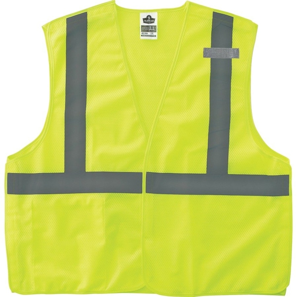 GloWear Type R Class 2 Econo Breakaway Mesh Vest combines protection, job-specific performance, innovation and style. Polyester mesh in an eye-catching fluorescent color is highly visible and ANSI/ISEA 107, Type R Class 2 compliant with 2" reflective tape for low-light visibility. Design includes breakaway hook-and-loop closures on the shoulders and sides for safety around snag hazards and moving parts. Machine-washable, breathable mesh fabric is lightweight, weighing only 3.3 oz. Lower interior pocket offers storage for essentials such as pens and notepads. MIC tab offers convenient radio access. Dual sizing fits a range of body sizes. Vest is great for road construction, utility crews, survey crews, construction, railway workers, baggage handlers, emergency response and warehousing/distribution.