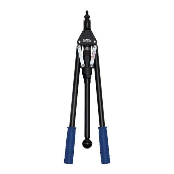 Goebel GO-510-UN Heavy Duty Manual Rivet Nut , High Leverage Design Reduces Grip Force Pressure & Increases Riveting Power, Riveting Capacity For Blind Rivets Nuts: 8-32 to 3/8, All Materials, 1/2-13 (Aluminum/Steel), Weight: 4.6 lbs, Length: 20-7/8", ABS CASE: 23-1/4" X 10-5/8" X 2-3/8", Includes Six Threaded Mandrels: 10-24 to 1/2-13, 10-32, Plus Five Nosepieces: #10, 1/4", 5/16", 3/8", 1/2", And a Service Wrench, Material: High Strength Aluminum Body & Large Steel Handles, Item Code: 2290005101