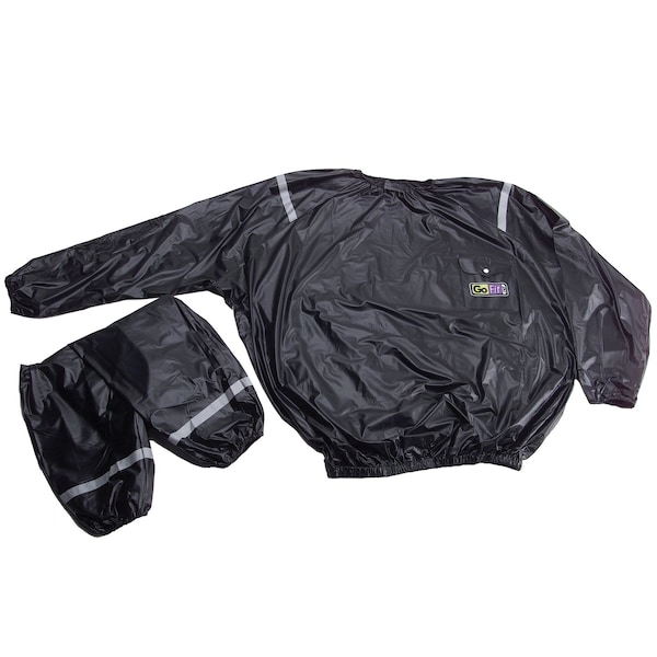 The Large/X-Large GoFit Sweat Suit will maximize any workout! This oversized, high-quality vinyl suit will increase perspiration, keep muscles warm and relaxed, boost metabolism, and burn more calories to meet a desired weight quickly. See faster results by enhancing every workout, or daily task, with the GoFit Sweat Suit!* Before beginning any weight loss or exercise program, you should consult with your physician.