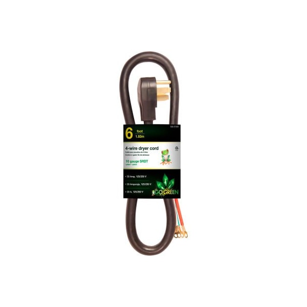 Gogreen power, gg-27306, dryer cord 6 ft the power by gogreen 6' 4 wire dryer cord features a molded-on right angle plug to help keep the cord from bending. Indsutry certified and etl approved