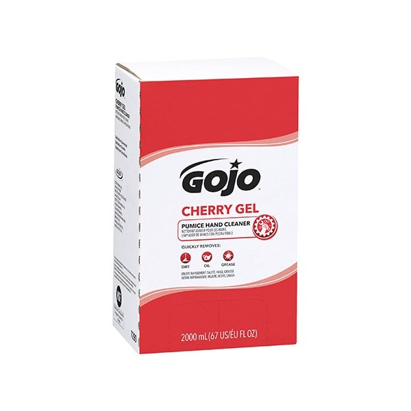 Gel-style hand cleaner with pumice scrubbers. Clings to hands for easy cleaning; Pleasant cherry fragrance; 1,000 applications per cartridge; For use with GOJO7200 - 2,000 mL dispenser. This product is equivalent to part number: S-19369-2K. Sold in a quantity of 4 per case.