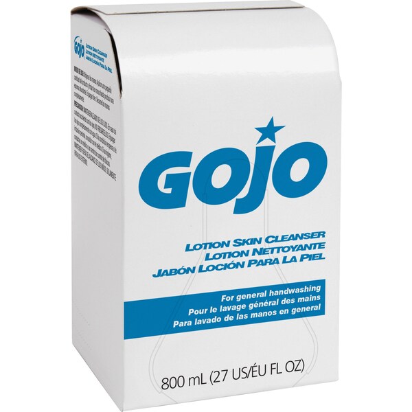 Mild cleansing lotion soap is designed for general use. Soap has a pink, synthetic detergent formula. Refill is designed to fit GOJO 800 ml. Bag-in-box Dispenser.
