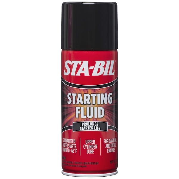 STA-BIL® Starting Fluid is a special formula starting fluid with upper cylinder lube and corrosion inhibitor. STA-BIL® Starting Fluid is safe for oxygen sensors and catalytic converters. It is for use in all gasoline and diesel engines in cars, trucks, tractors, buses, marine engines, lawnmowers, snowmobiles, snow blowers and construction equipment. This starting fluid saves starters and batteries by helping get engines started quickly.