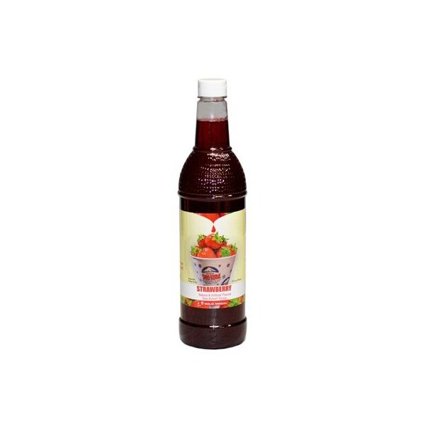 25 OZ, 750 ml, Strawberry Flavored, Ready To Use, SnoKone Syrup, Squirt Cap, Made With High Fructose Corn Syrup