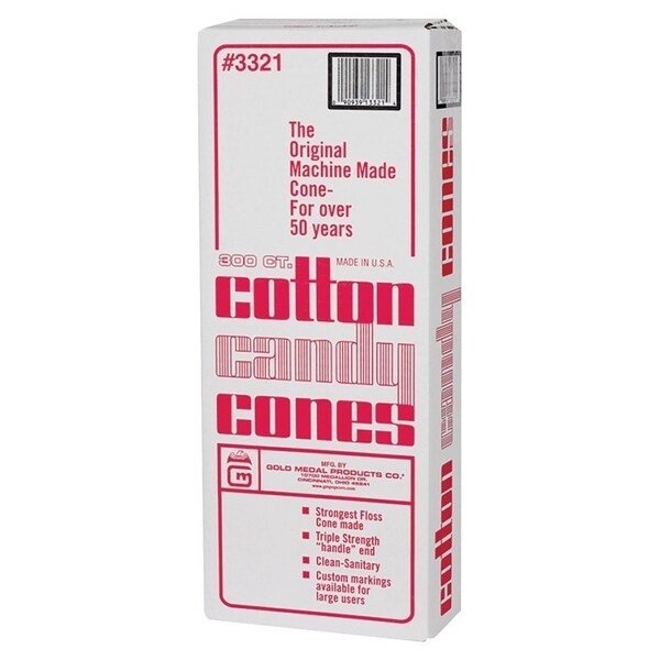 Add some old-fashioned flair and signature flash to your cotton candy sales. A Gold Medal original, our plain cotton candy cones #3321 make a big impact for minimal cost and are an easy and fun way for your customer to enjoy your sweet treats. Made from heavyweight southern Kraft paper and triple wrapped at the handle. Make sure to add these cones to your cotton candy supplies.