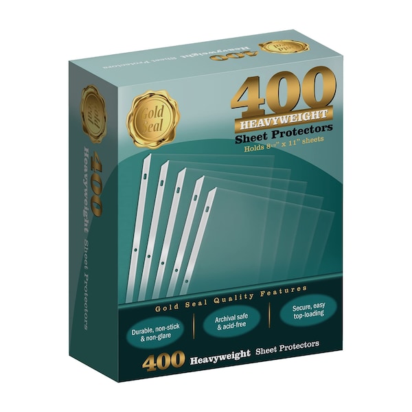 400 Count Clear Heavyweight Poly Sheet Protectors by Gold Seal, 8.5" x 11", Extra Sturdy, Secure Topload, 400 Boxed Sheet Protectors