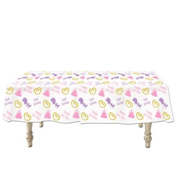 The Company is the oldest and largest manufacturer of decorations and party goods. With unsurpassed service and top quality products its easy to understand why The Company is world renowned in the Party Goods Industry. Our decorations and party goods are manufactured from the finest and highest quality raw materials. This combined with unsurpassed skilled craftsmanship creates the very best value in the market place. Continuous research of new product ideas keep our product lines on the cutting edge of the party goods industry. Princess Tablecover 54 inches x 108 inches Plastic