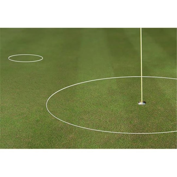 The player places the small 18" landing target ring on the green indicating where the ball should land to end up in the 6 foot circle. This will give the player a statistically makeable 3' putt.