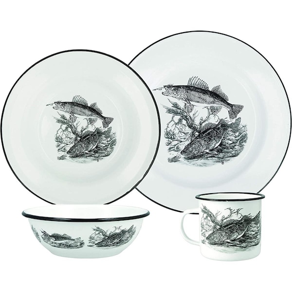 412013 16 Piece Animal Print Enamelware Dinnerware Set