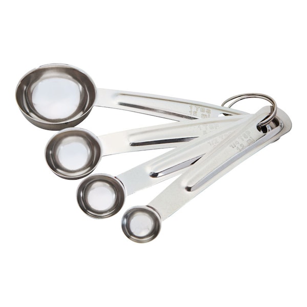Durable stainless steel measuring spoon set includes 1/4 tsp, 1/2 tsp, 1 tsp, and 1 tbsp sizes for precise cooking or baking with either liquid or solid ingredients-its easy to read measurement markings make it effortless to achieve accuracy for a perfectly balanced and proportioned ingredient ratios.
