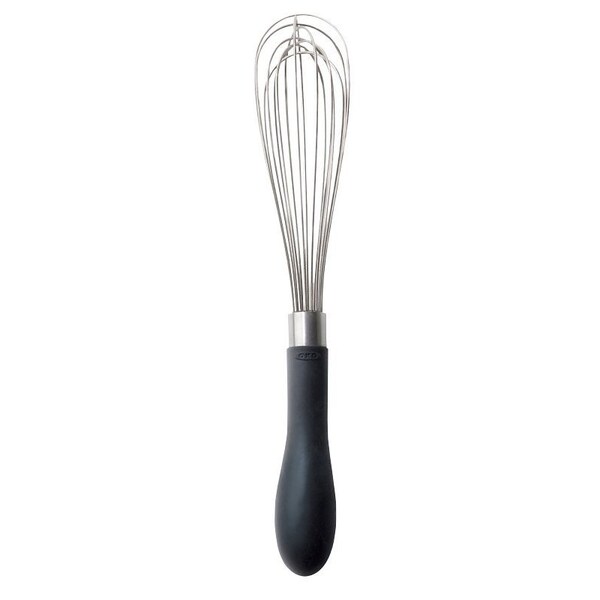 Beat eggs, stir batter, whip cream and stir sauces with ease. Our whisks feature polished stainless steel wires and teardrop-shaped handles that fit comfortably in the palm of your hand. The soft handle won't slip, even in wet hands.
