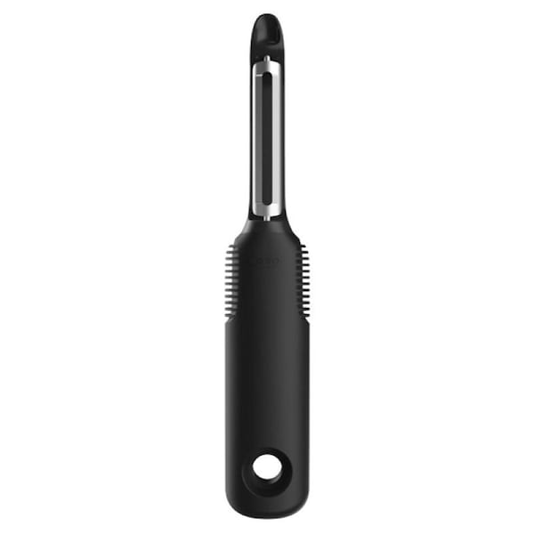 A classic for firmer vegetables, the swivel Peeler's sharp, hardened stainless steel blade removes those inedible outer layers with ease and leaves all the good stuff underneath intact. The cushioned handle won't slip, even when your hands are wet. Features a built-in potato eyer.