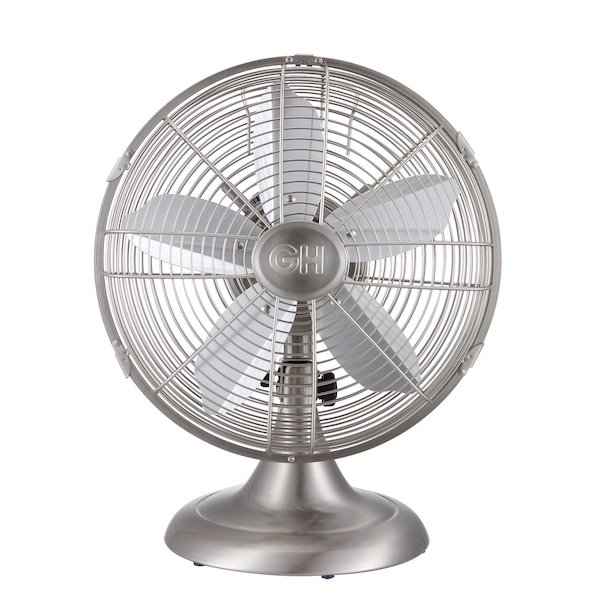 12in Retro Table Fan in Brushed NIckel finish